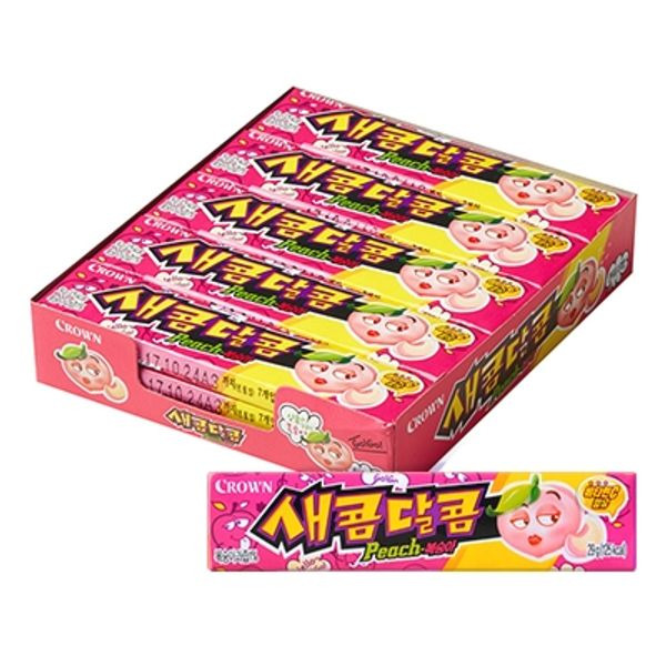 복숭아의 상큼한 맛을 느낄 수 있는 크라운의 새콤달콤 캔디는 남녀노소 누구나 좋아하는 맛입니다. 작은 포장으로 휴대하기도 편리합니다.